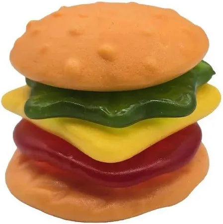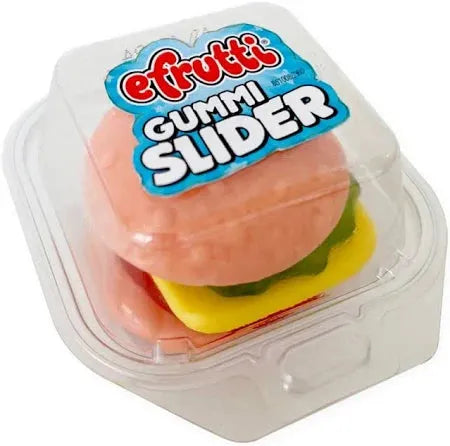 Take a deliciously fun twist on gummy candy with E Frutti Gummi Sliders! Each individually packaged mini slider is made up of five soft and chewy gummy pieces that resemble a real cheeseburger—complete with a bun, patty, lettuce, cheese, and tomato for a playful candy experience.