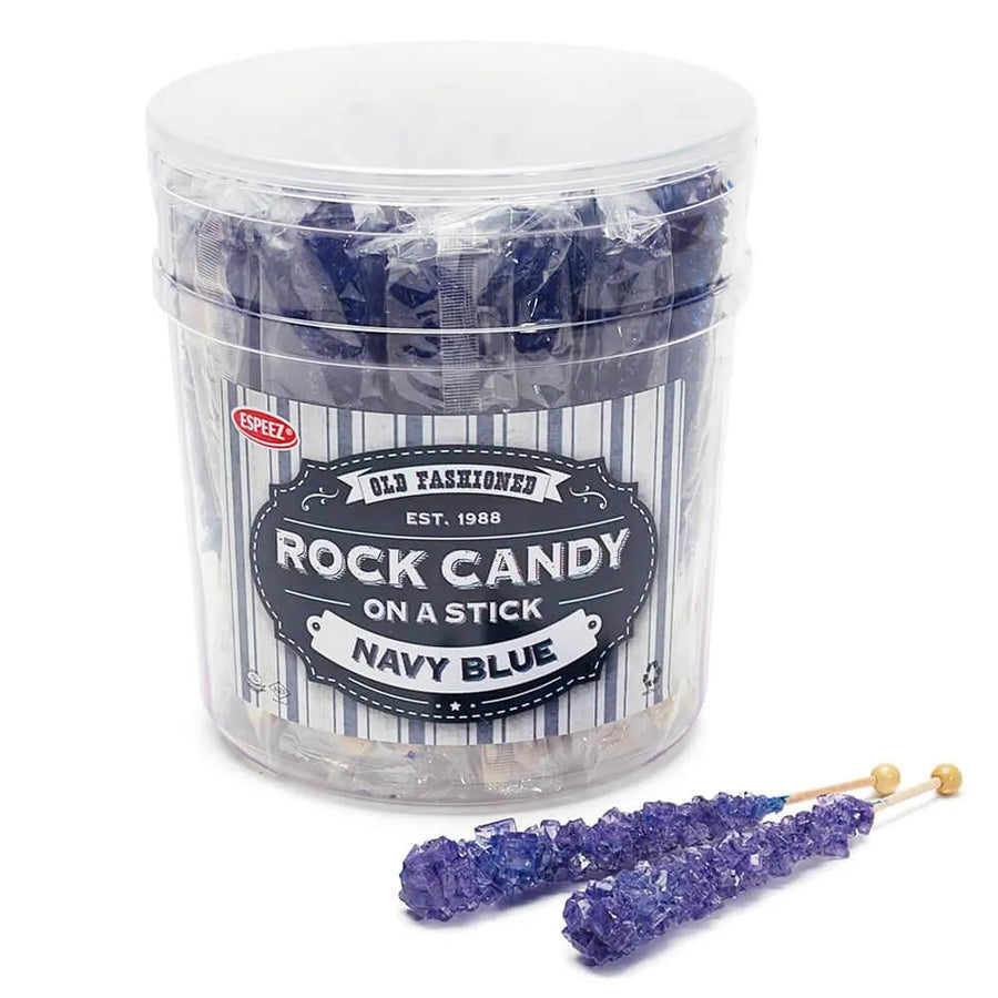 Tub contains 36 wrapped Navy Blue Rock Candy Crystal Sticks.