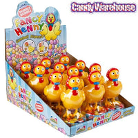 Display box contains 12 Fancy Henny Bubble Gum Gumballs Laying Plastic Chickens.