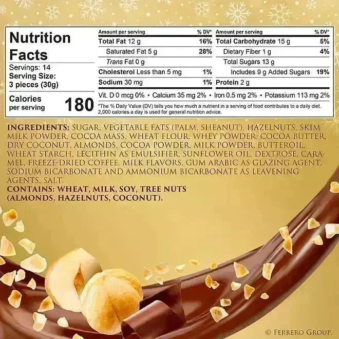 Gift box contains 42 individually wrapped Ferrero Rocher Chocolate Balls.