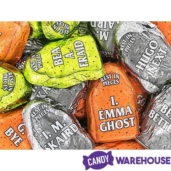 Bag contains 4 pounds of Foil Wrapped Chocolate Gravestones.