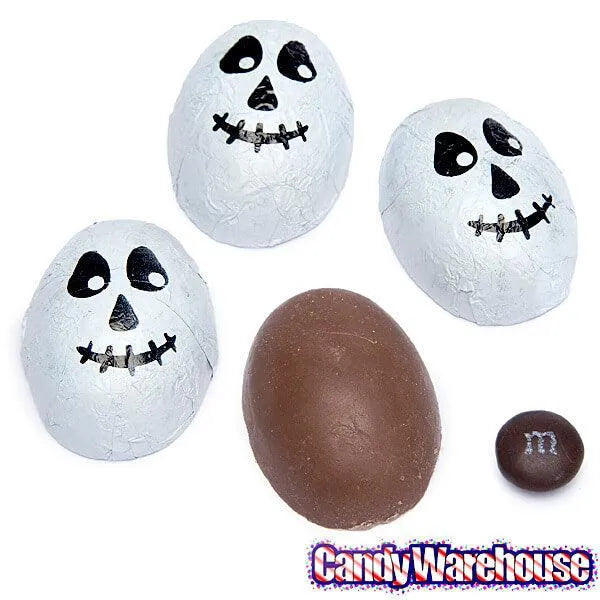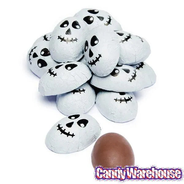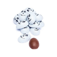 Perfect for the candy dish as your Halloween party or event, these crispy chocolates are wrapped in foils with a scary skull design!