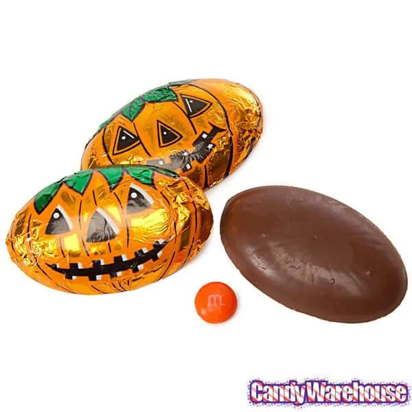 Real milk chocolate discs are wrapped in colorful foils featuring a fun Jack-O-Lantern pumpkin design. The perfect Halloween party favors!