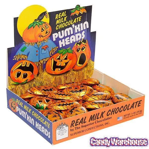 Foiled Milk Chocolate Pumpkin Heads: 36-Piece Display