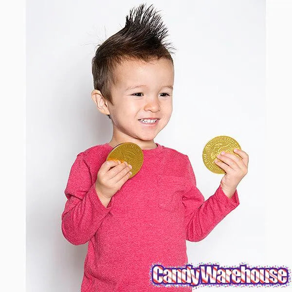 Don’t tell the United States Treasury Department. We may have broken into Fort Knox and made off with a bunch of their limited edition gold-plated dollar coins. Then again, we may have simply embossed thirty milk chocolate disks with intricate 3-D designs that look like real dollar coins, and then wrapped them in shiny gold foil to make an impression at your next party. You’ll have to try them for yourself to find out which is true. Basically, if you can take off the foil and bite into soft, creamy milk chocolate, then the Treasury Department has nothing to worry about.