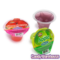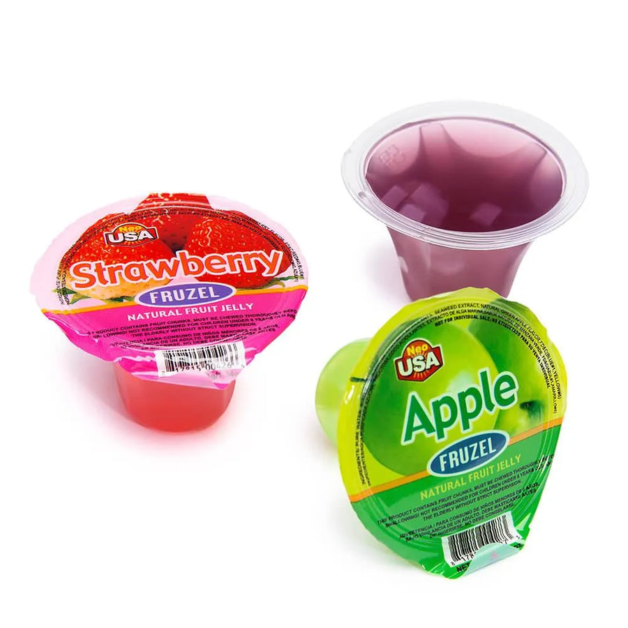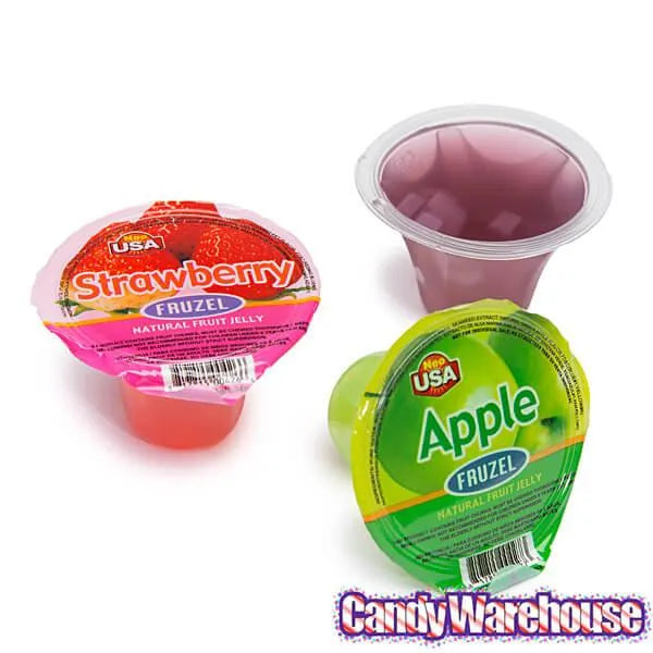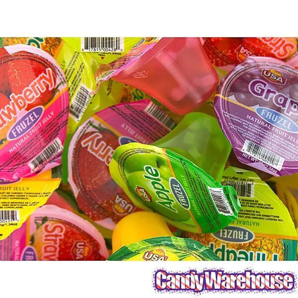 Jar contains 36 Fruzel Assorted Natural Fruit Jelly Candy Cups.