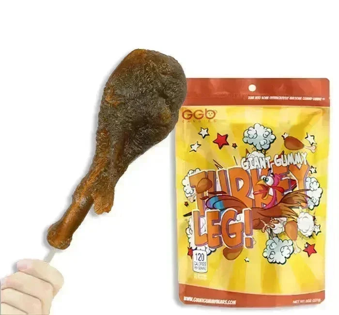 Indulge in a fun twist on a fairground favorite with this giant cola-flavored gummy turkey leg! Crafted to resemble the iconic fair treat, this oversized gummy delivers a burst of cola flavor in every chewy bite—perfect for candy lovers looking to savor a larger-than-life sweet experience. Bring these to your next Thanksgiving Dinner!
