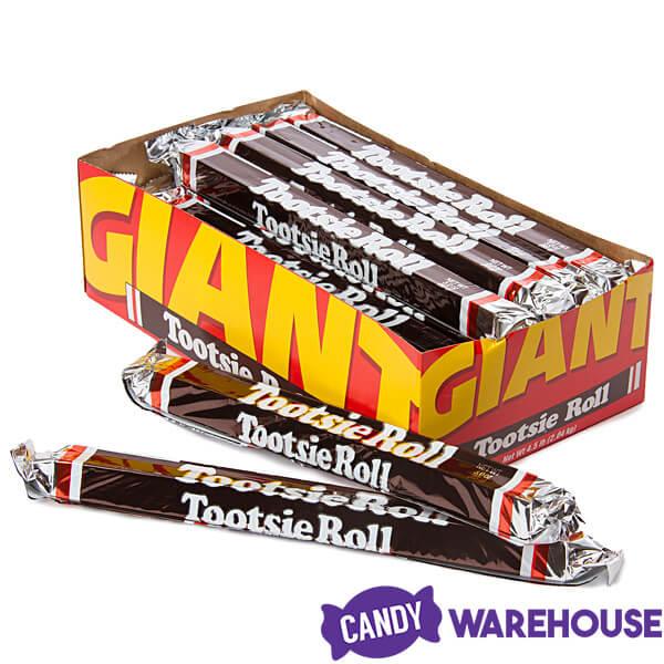 Display box contains 24 Giant Tootsie Rolls Candy Bars, each with a net weight of 3 ounces.