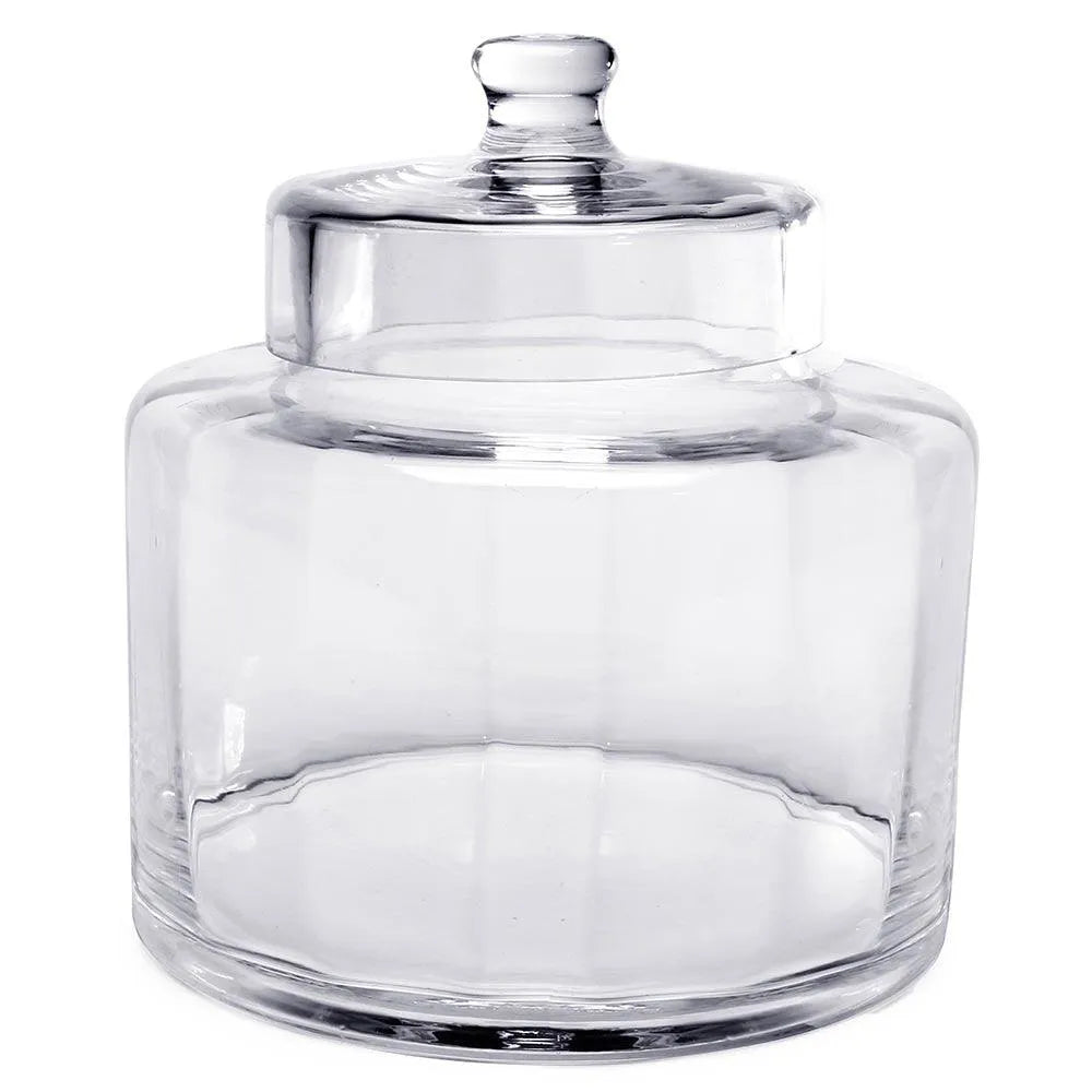 In a shape reminiscent of a telescoping lens, this 8 inch optic canister shelters your favorite sweets with sophistication! Layer colored candies to play into the neat, contoured shape of the jar, or just fill it with your favorite treat of choice for sharing. Either way, this crystal clear display piece will entertain and delight all who behold its optical illusion-like charm!