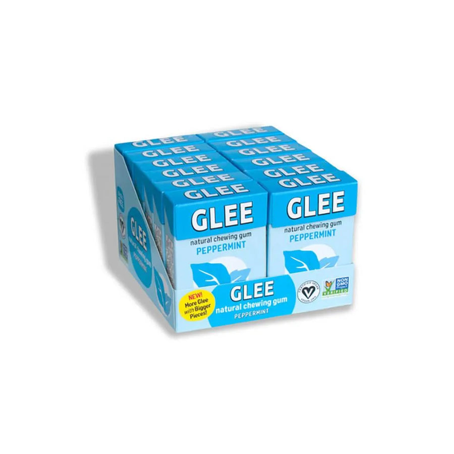 Display box includes 12 All Natural Peppermint Glee Gum Packs, each containing 16 pieces.