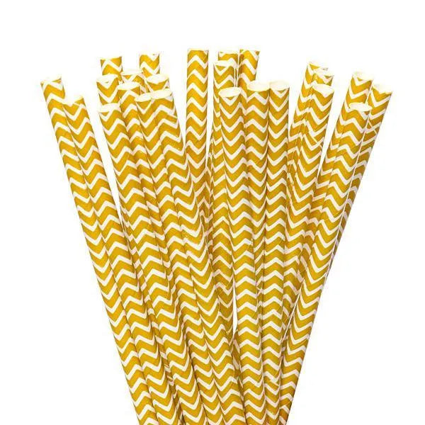 Bag contains 25 Gold Chevron Striped Paper Drinking Straws.
