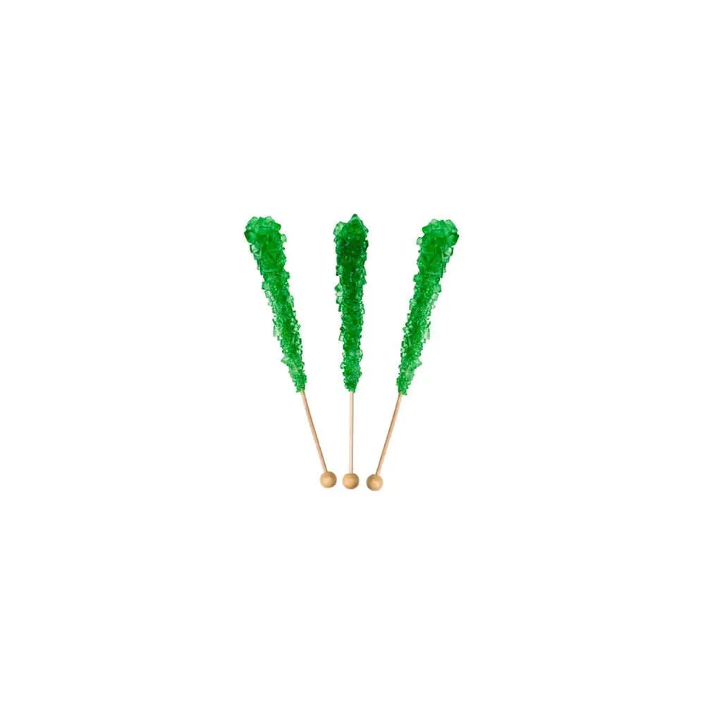 Case contains 100 wrapped Green Rock Candy Crystal Sticks.
