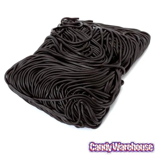 Delicious black licorice laces to tie your tongue in knots. Also known as shoe string licorice, these candy strands are as fun to play with as they are to eat! Perfect for decorating cakes with candy "hair"!