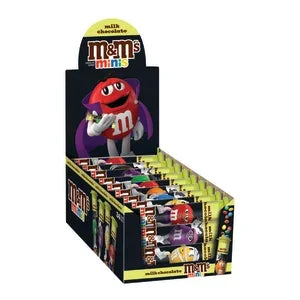 Display box contains 24 Halloween M&M's Minis Candy Mega Tubes, each with a net weight of 1.77 ounces.