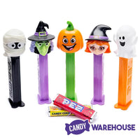 The gang’s all here in this box of bulk PEZ toys! And now your gang can choose from their favorite spooky characters, including a wide-eyed mummy, an warty old wicked witch, a smug pumpkin, a cute witch, and a a party-loving ghost. All of these Halloween PEZ dispensers stand upright on their own two feet and come with both raspberry and lemon PEZ candy packs. To dispense the goods, just pull back on the top! Both an activity and a treat, this 12-pack of Halloween PEZ dispensers comes in a fun display box that will get your ghoulish guests off to a howling start!