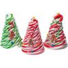 Elegant swirls of peppermint candy canes twisted into the shape of tiny Christmas trees and then hand decorated with delicious icing! Each tree is sealed inside an acetate package and can be hung as an ornament. Assortment includes the 3 designs shown.