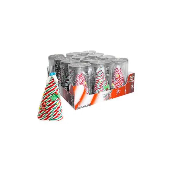 Display box contains 12 acetate packs of Hand Decorated Peppermint Candy Cane Christmas Trees.
