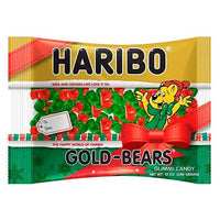 Bag contains 12 ounces of Red and Green Haribo Gummi Bears Candy.