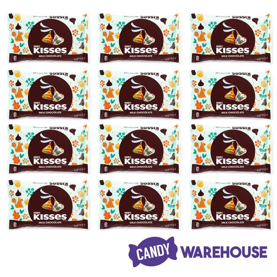 Box contains 12 Autumn Foiled Hershey's Kisses Milk Chocolate Candy Bags, each with a net weight of 11 ounces.