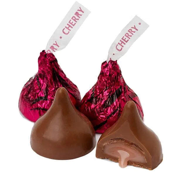 For the youngster in all of us, the KISSES Cherry Cordial Bag serves up a veritable mouth party! It's the glorious taste of Cherries and Milk Chocolate in the familiar form of a KISS. The Hershey's Cherry Cordial variety wraps HERSHEY'S KISSES brand milk chocolate around the delicious taste of cherry, creating a winning combination perfect for your favorite candy dish.