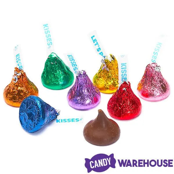 Experience the color explosion of this unique assortment of Hershey KISSES milk chocolates! The classic chocolate drops wrapped in metallic foils with a white paper plume streaming out of the top are perfect for filling your favorite candy dish at the home or office. Designing a colorful candy bar for a wedding or other special occasion? Hershey Kisses in a medley of bright colors are sure to add festive flair to any celebration dessert table.