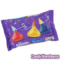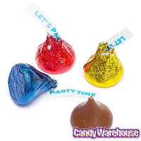 Make your event exceptional! Celebrate with delicious Hershey's Kisses Milk Chocolates featuring festive wrappers in primary colors of red, yellow, and blue. The plumes streaming from the top of these Kisses have party-themed phrases such as "Let's Party," "Celebrate," and "Party Time."