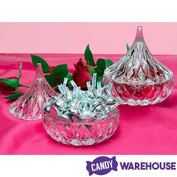 Classic Hershey's Kisses milk chocolate morsels with shiny silver wrappers! These bite-sized, distinctively shaped gems of creamy, smooth chocolate are as popular today as when they first appeared in 1907. Each piece is made with love! The classic white paper ribbons feature the word "Kisses" on every piece.