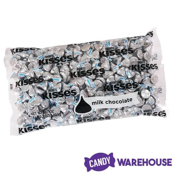 Bag contains 4 pounds of Hershey's Kisses Silver Foiled Milk Chocolate Candy.