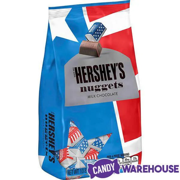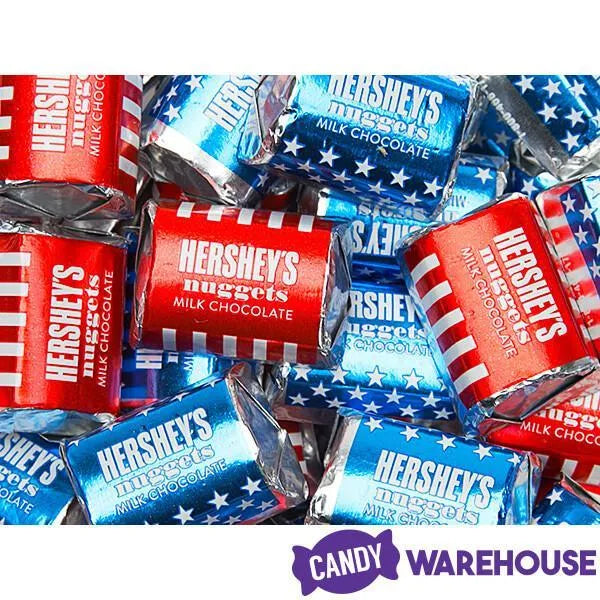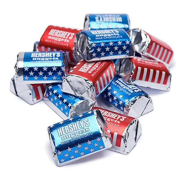 Wrapped in shiny metallic foils featuring USA flag designs, these unique Hershey's Nuggets milk chocolates are the sweetest way to show your American pride. They're perfect for candy bowls at 4th of July parties or other patriotic events.