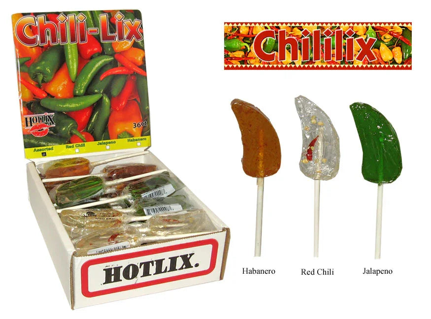 Dare to spice things up with Hotlix Chili-Lix Assorted Lollipops! These bold hard candy pops are infused with real chili pepper for a fiery twist on traditional sweets. Choose from red chili, jalapeño, or habanero flavors—each one delivers a different level of heat that will challenge your taste buds and thrill spicy candy fans. No bugs here, just bold flavor and pure heat in every lick!