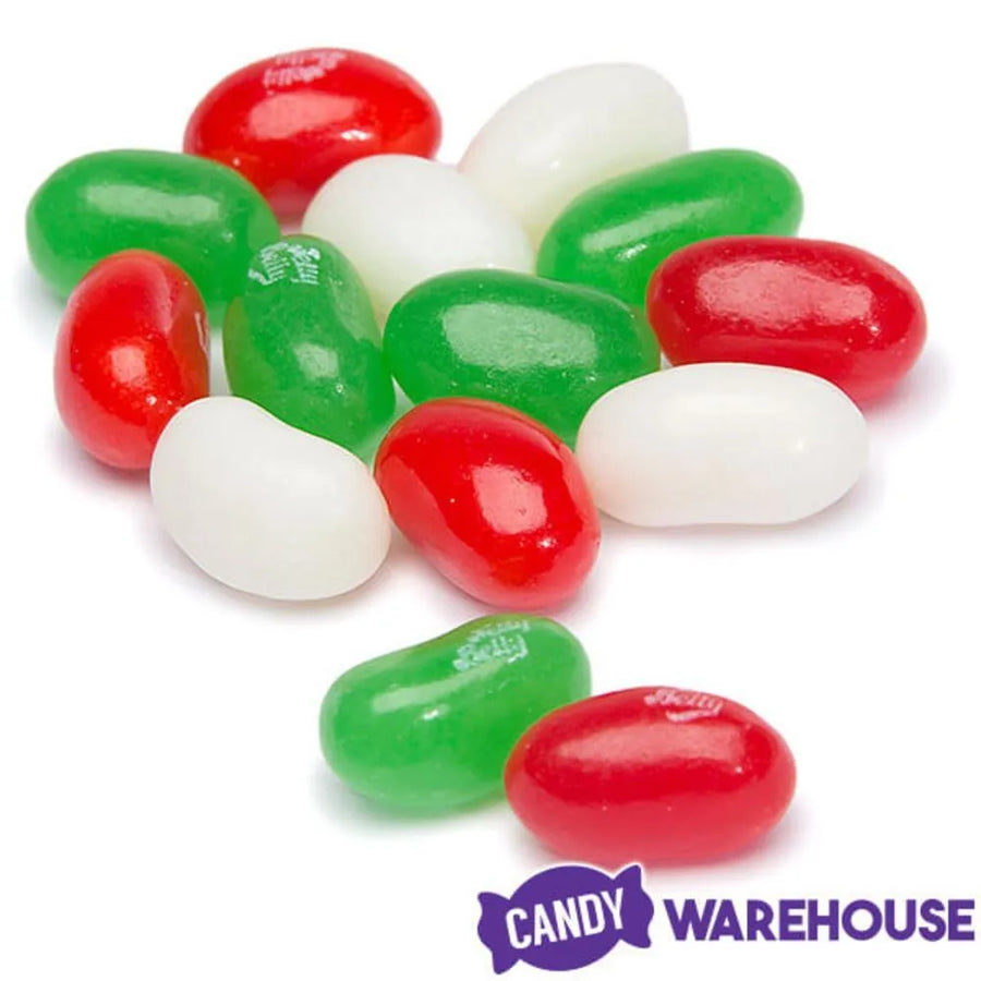 Festive stocking bag filled with red, white, and green Jelly Belly jelly beans.