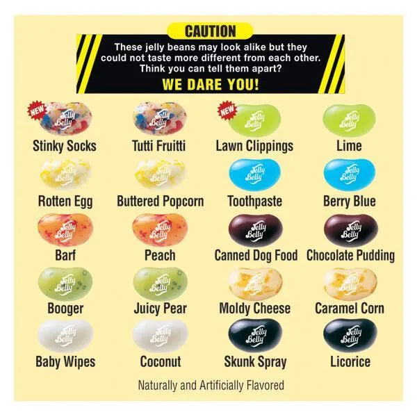 Uh oh! Jelly Belly may have outwitted us by making their delicious favorites look exactly the same as flavors you’d rather avoid. Juicy Pear or Booger? Peach or Barf? Tutti-Fruitti or Stinky Socks? Do you think you’ll be able to tell the difference? Our guess is you won’t. But the real question is, "Would you dare to compare?" Perfect for slumber parties, play a grueling or gratifying game of Jelly Belly or Dare with their BeanBoozled Jelly Bean Game Jumbo Spinner Box. Depending on where the arrow lands, the night can be full of pleasant or unpleasant surprises.