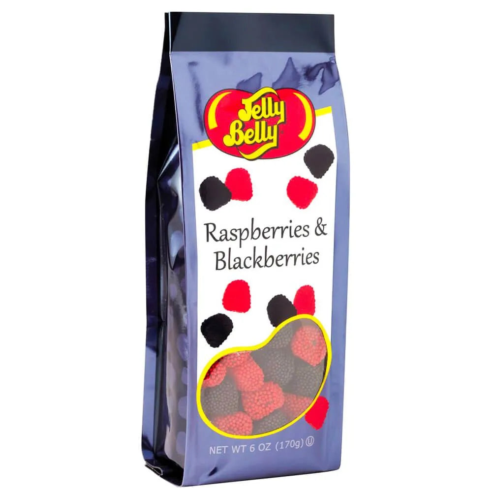 Jelly Belly Raspberries and Blackberries bring a touch of European flair to your candy cravings! These delightful treats feature a soft, fruity gel center bursting with raspberry and blackberry flavor. Each piece is coated in crunchy candy seeds, giving them their berry-like look—and their charming name. Packaged in a gift bag, they’re perfect for sharing or snacking—grab yours today at Candy Warehouse!