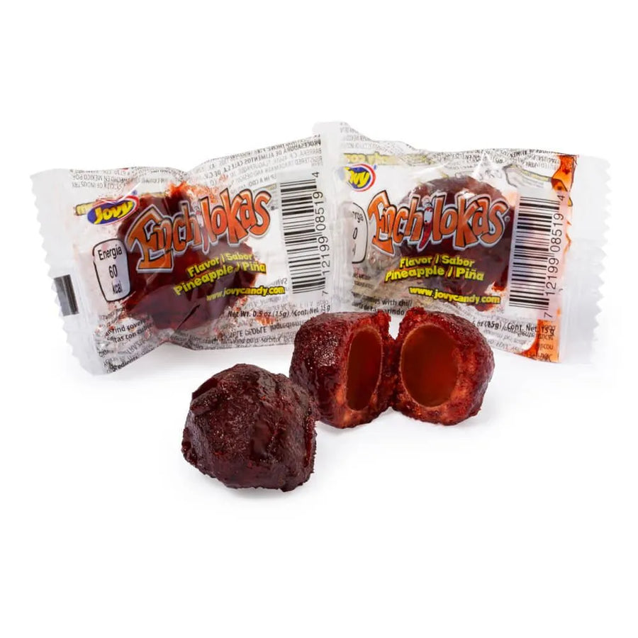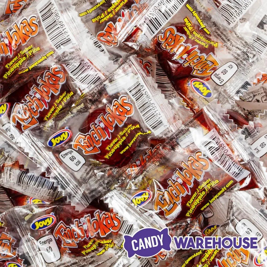 Bring south-of-the-border spirit to your next party with a 32-piece bag of Jovy Enchilokas pineapple chili gummy candy. This mouthwatering Mexican candy perfect for pinatas packs a killer combo of spicy, sweet, and sour flavors to stimulate multiple taste receptors in your mouth. A chewy tamarindo candy shell dusted with chili powder surrounds the delicious pineapple-flavored gummy center. Each pineapple chili Enchilokas is individually wrapped in a clear package that seals in the freshness and lets the tamarind covered gummies shine through. Candy Warehouse has a huge selection of sweet-and-spicy Jovy Candy products that put the fire in your fiesta and the bueno in every bash.