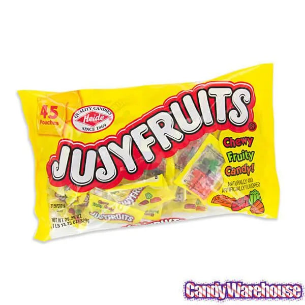 Bag contains 45 snack size packs of JujyFruits Candy.