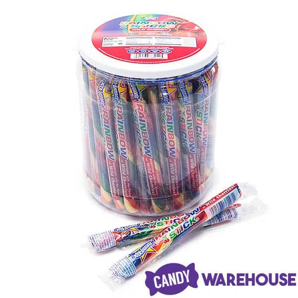 Jar contains 52 wrapped Jumbo Rainbow Cherry Candy Sticks.