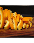 Bag contains 5 pounds of Bite-Size Dark Chocolate Covered Orange Peels Candy. Made in the USA.