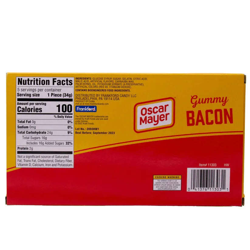The Kraft Oscar Mayer Gummy Bacon brings a fun and fruity twist to a breakfast favorite, available at Candy Warehouse! No skillet needed—these soft, chewy gummy bacon slices deliver a delicious burst of fruity flavor in a playful, realistic bacon shape. Perfect for snacking, sharing, or gifting, this novelty treat is sure to surprise and delight bacon lovers and candy fans alike. Whether you're looking for a fun snack or a quirky addition to a candy spread, grab your Oscar Mayer Gummy Bacon today from Candy Warehouse and enjoy a sweet take on a sizzling classic!
