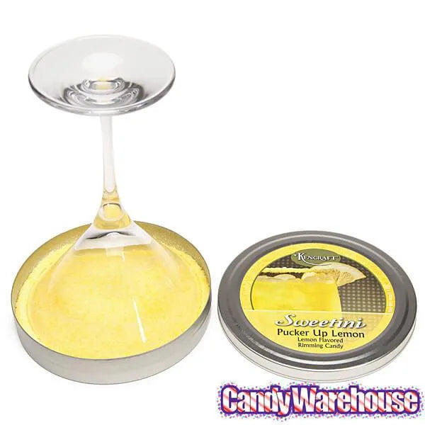 Tin contains 4 ounces of Lemon Sweetini Cocktail Rim Sugar.