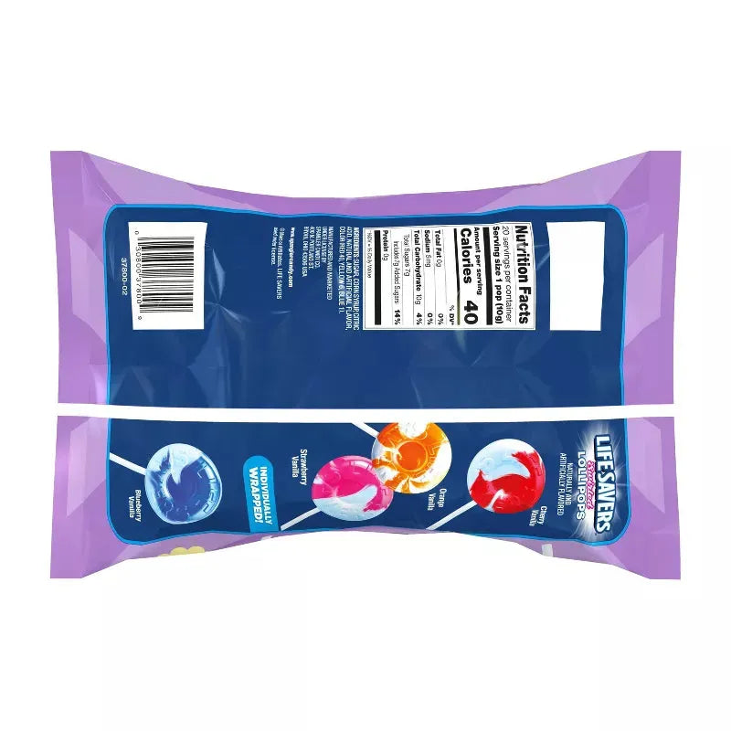 Brighten up your Easter and spring celebrations with Life Savers Swirled Lollipops! These colorful, individually wrapped pops combine classic Life Savers fruit flavors with a creamy vanilla swirl for a deliciously unique twist. Enjoy up to four great flavor combinations in each bag: Cherry/Vanilla, Blueberry/Vanilla, Strawberry/Vanilla, and Orange/Vanilla. Gluten, peanut, and dairy-free, these treats are perfect for Easter baskets, party favors, candy jars, or sharing with friends and family. A sweet, swirled delight for any occasion!