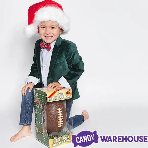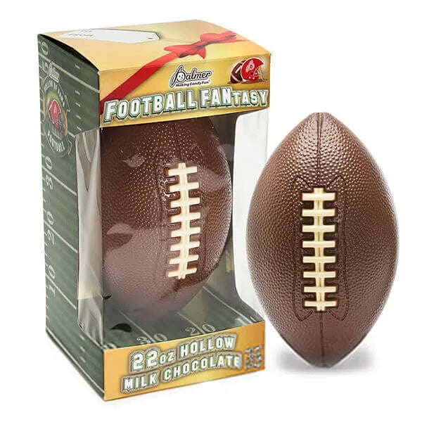 Gift box contains 1 Hollow Milk Chocolate Football with a net weight of 22 ounces.