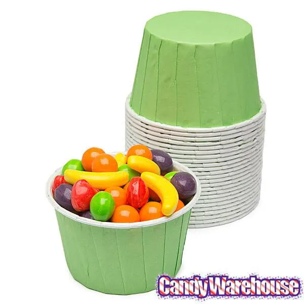 Pack contains 25 Light Green Paper Candy Cups, each with a capacity of 4 ounces.
