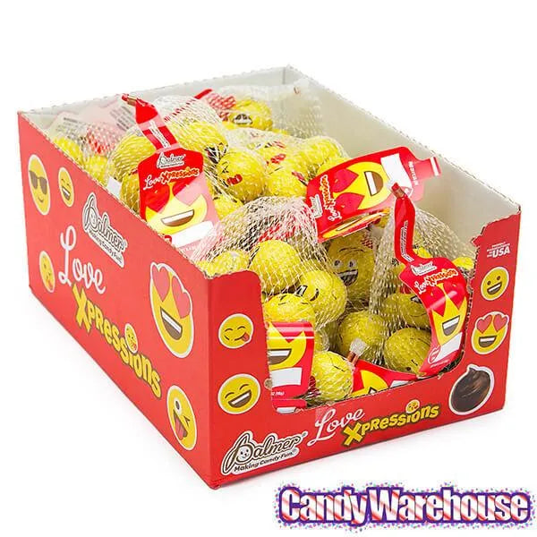 Palmer Love Xpressions Valentine Emojis Foiled Chocolate Balls in Mesh Bags: 18-Piece Box