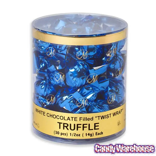 Madelaine Blue Foiled White Chocolate Filled Truffles: 30-Piece Tub