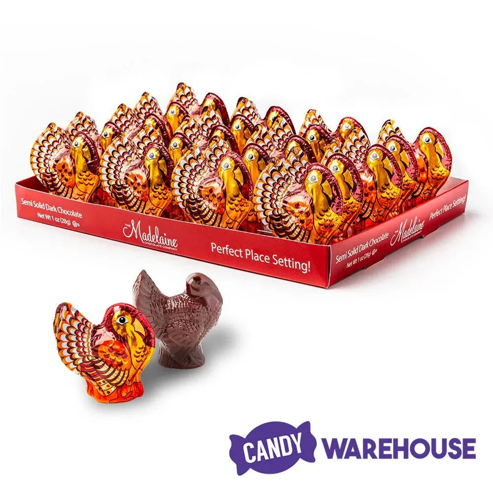 Madelaine Foiled Semi-Solid 1-Ounce Dark Chocolate Turkeys: 20-Piece Display
