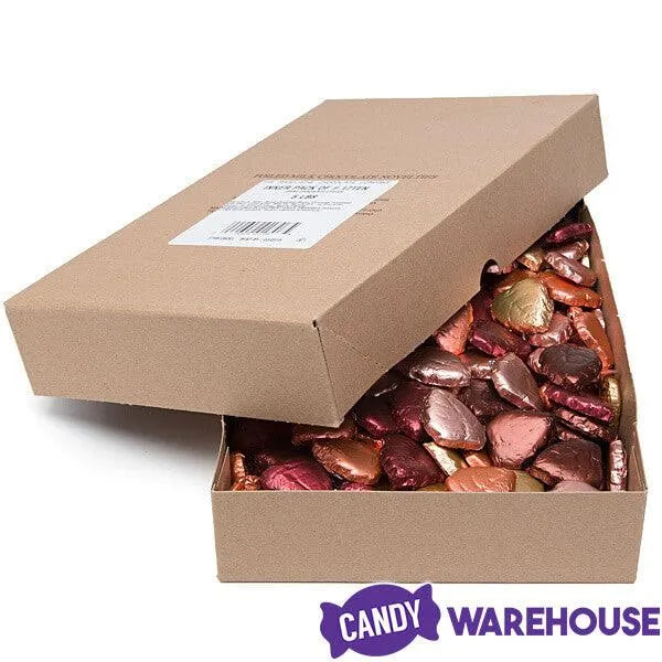 Case contains 10 pounds of foil-wrapped Dark Chocolate Autumn Leaves.