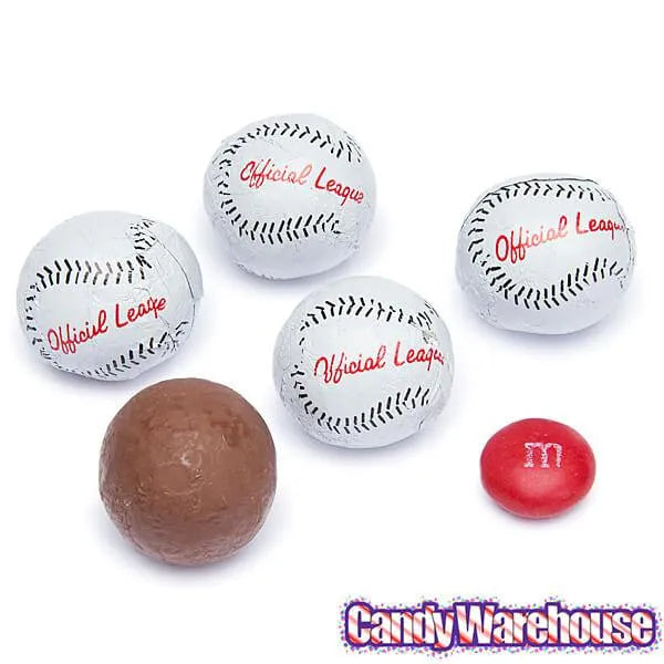 Madelaine Foiled Milk Chocolate Sports Balls 2-Ounce Mesh Bags - Baseball: 24-Piece Tub