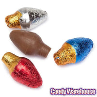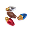 Brighten your holiday smile with these delightful milk chocolate Christmas lights! Semi-solid molded milk chocolate light bulbs, wrapped up for the season in red, green, gold, silver, blue, and pink foils. The perfect way to light up holiday parties and events.