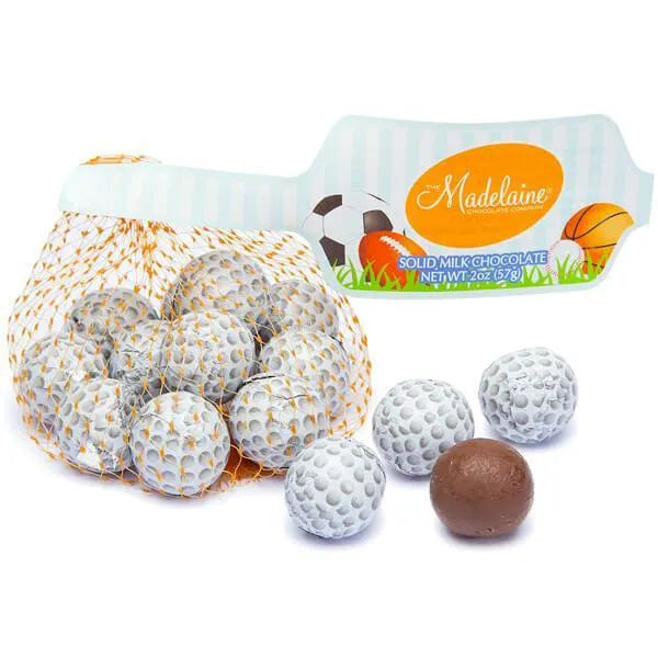 Madelaine Foiled Milk Chocolate Sports Balls 2-Ounce Mesh Bags - Golf: 24-Piece Tub