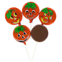 Celebrate this Halloween with these jolly jack-o-lantern milk chocolate lollipops! Wrapped in three different adorable jack-o-lantern face foil designs perfect for Halloween parties and events.